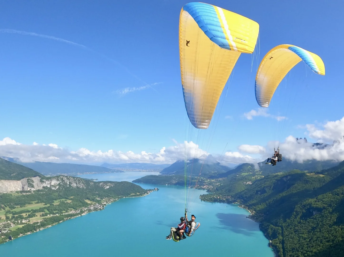 - Vol en parallèle : vos moniteurs certifiés vous font vivre un vol unique au-dessus du lac d’Annecy